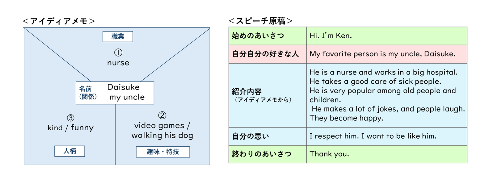 (2)<アイデアメモ>をもとに,スピーチ原稿を書きます。