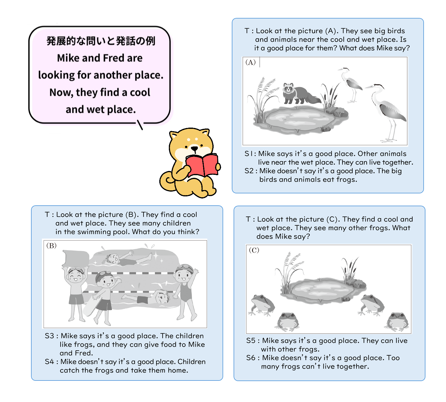 ここでは,2匹のカエルの考え方の違いを読み取り,物語が伝えたいことを理解することを目標としています。