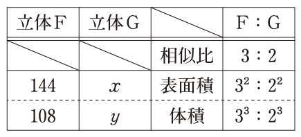 教科書p.151例題1は,相似な立体の表面積や体積を,相似比の関係を使って求める問題です。抽象的な立体F,Gを取り上げているため,どれとどれとの比であるかがわかるよう,くふうして指導する必要があります。