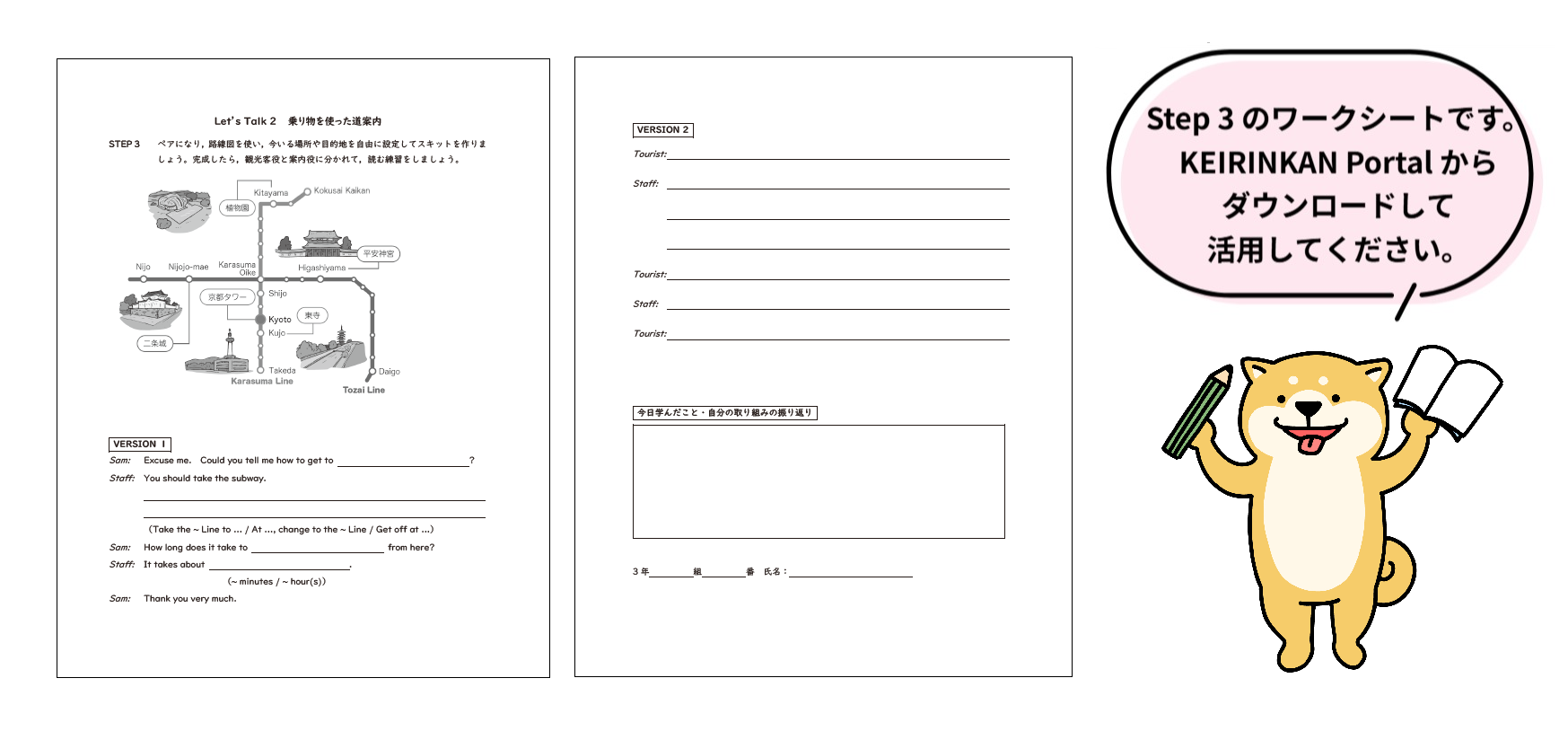 ・Step 3 について,日本人の生徒にとって実際に英語で道順を訪ねなければならないのは,海外に赴いた時です。それを想定して,ロンドンやニューヨークの実際の路線図を活用してもおもしろいでしょう。