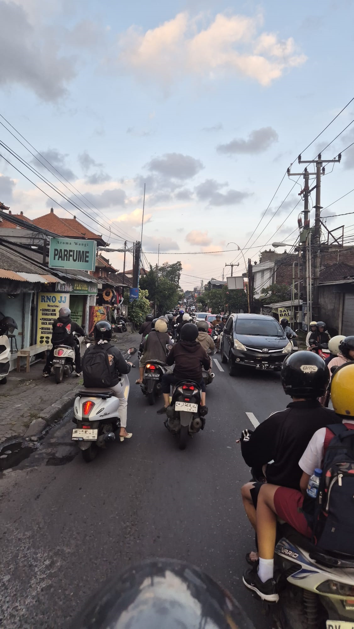 インドネシアと日本は結びつきが強く、とても友好的な関係を築けています。例えば、インドネシアで走っている車やバイクのほとんどが日本製です。写真にあるように、一車線の道路にもかかわらず、ものすごい数の車とバイクです。