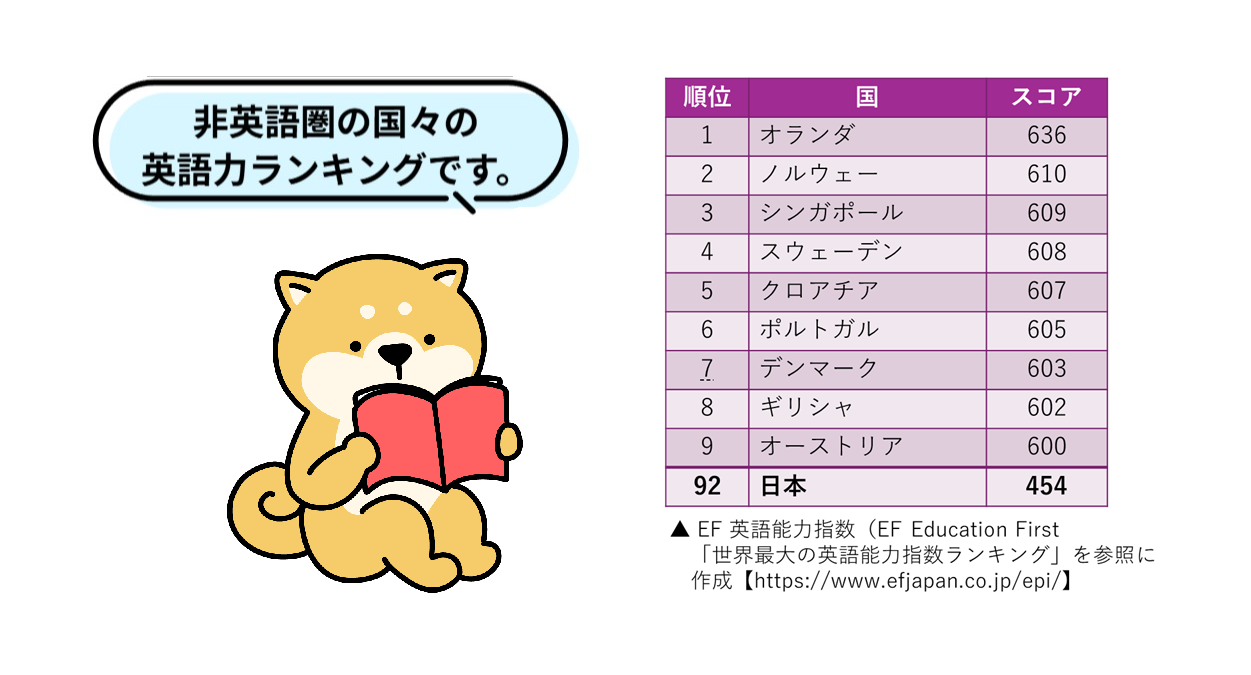 その2024年版では,オランダが最も高い英語力を持つ国とされ,国民の9割以上が英語を話せるとされています。その要因としては,幼少期から充実した英語教育を受けていることやテレビ番組など日常的に英語に触れていることなどが挙げられます。次いで上位に入っているのが,ノルウェー,シンガポール,スウェーデン,クロアチアです。