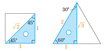 これらの割合は,もし忘れてしまっても,三角形や正方形に三平方の定理を適用することで,求めることができます。数値だけを覚えるのでなく,三平方の定理を活用した求め方を理解するように指導するとよいでしょう。
