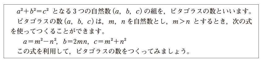 ピタゴラスの数“3,4,5”については,生徒の実態に合わせて,次のような課題に取り組ませるのもよいでしょう。