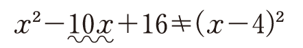 この段階では,平方の公式しか使わないので,意義を感じることはできませんが,次のような例を示しながら,2ab に相当する部分を確認する必要性を伝えておきましょう。