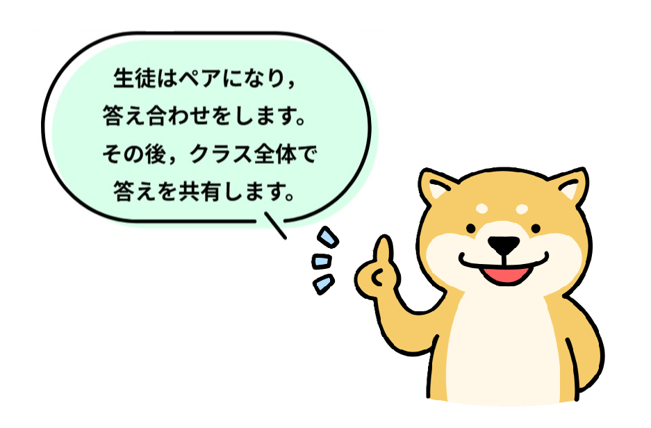 ・生徒に答えさせるときは,できるだけ教師の支援なしで話せることができるとよいのですが,慣れていない場合は,少しずつに一人で発表ができるように促します。