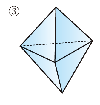多面体については,教科書p.181で,「いくつかの平面で囲まれた立体を多面体といい,……」と定義していますが,上記のねらいから外れるため,小学校では学んでいない一般の多面体については,軽い扱いとしています。