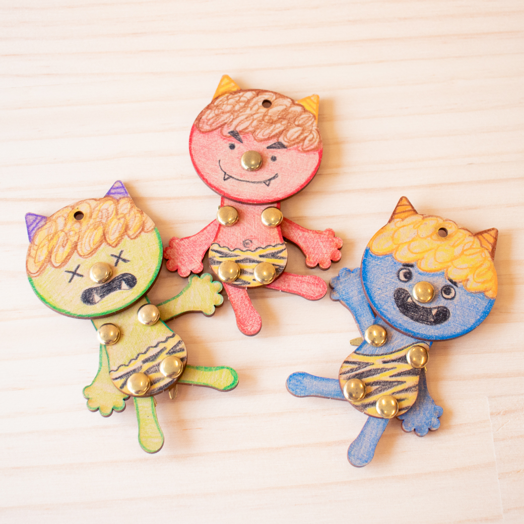 ゆらゆら揺れるかわいい鬼のキーホルダーづくり。